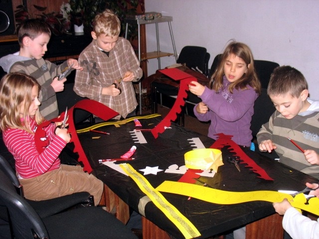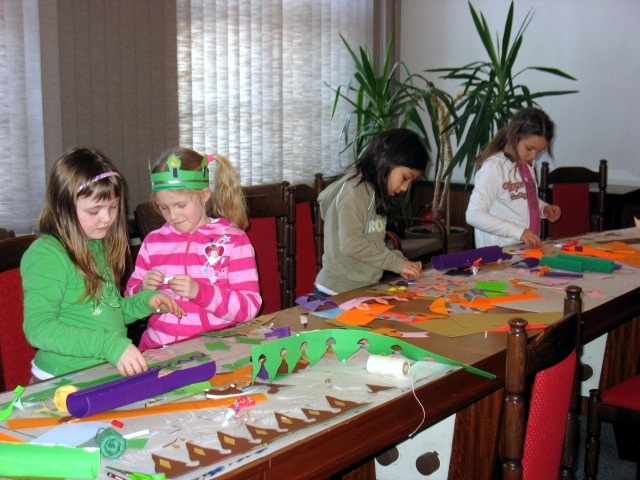Trzej Królowie to w tradycji chrześcijańskiej mędrcy ze Wschodu, którzy udali się do Betlejem, aby oddać pokłon narodzonemu Dzieciątku. Na pamiątkę tego wydarzenia do dziś 6 stycznia obchodzimy uroczystość Objawienia Pańskiego. Kacper, Melchior i Baltazar zainspirowali prowadzących zajęcia, Józefa Kodzia i Danutę Przybysz, którzy przybliżyli dzieciom sylwetki mędrców, ale przede wszystkim zaprojektowali przepiękne korony. Również dzieci, wykorzystując przeróżne materiały: brystol, papier samoprzylepny, bibułę, złoty i srebrny brokat, przygotowały oryginalne, bogato zdobione królewskie nakrycia głowy, w których chętnie pozowały do – ostatnich w świątecznym nastroju – fotografii.