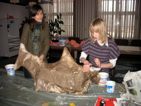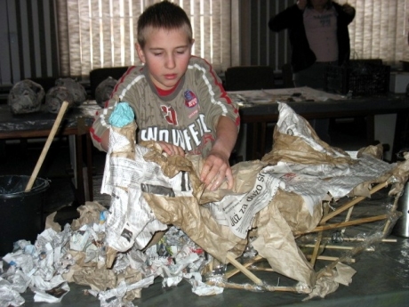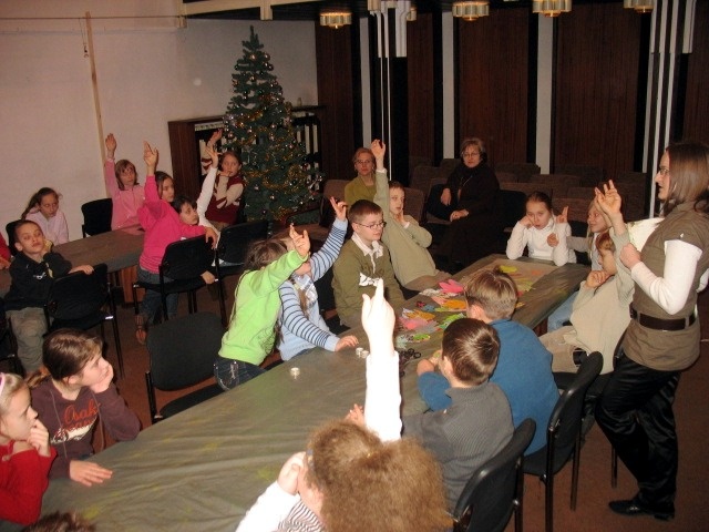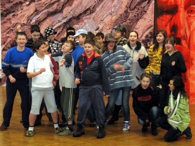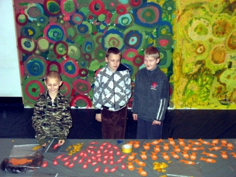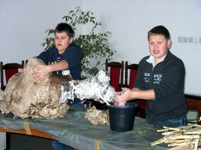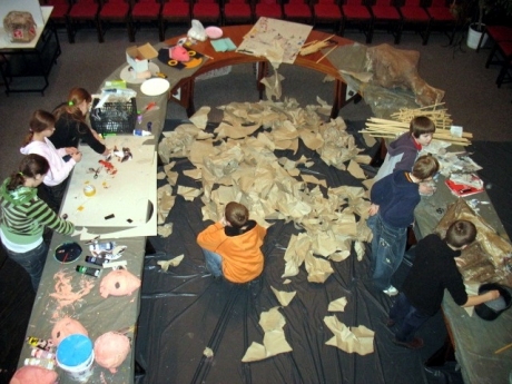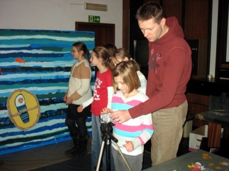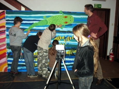 Styczniowe warsztaty w grupie Ewy Niśkiewicz-Krawczyk i Radosława Krawczyka rozpoczęły się krótkim pokazem filmów, który przybliżył warsztatowiczom kolejne z technik animacji. Podczas spotkania dzieci kontynuowały budowę scenografii – malowały maski, tworzyły konstrukcje zwierząt, wycinały, kleiły oraz, wykorzystując animację poklatkową, przygotowywały pierwsze sceny filmu o Mojżeszu.