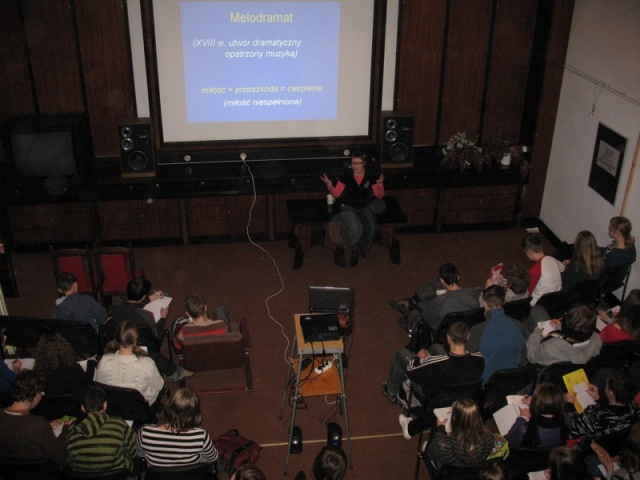 Podczas wykładu Melodramat, czyli jak wzruszyć widza? młodzież rozmawiała o współczesnych „wyciskaczach łez”, aktorach melodramatycznych, słynnych parach nieszczęśliwych kochanków oraz muzyce – znanych ścieżkach dźwiękowych i przebojach wielkiego ekranu. Iwona Bartnicka omówiła także rodzaje melodramatu, jego cechy oraz historię gatunku.