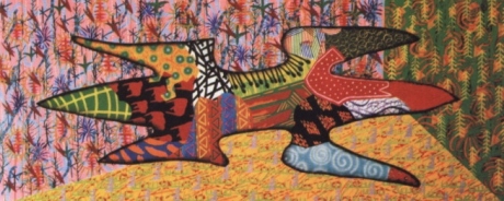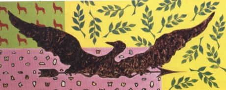 W pracach Polaka jest więcej powtarzających się rytmicznych znaków, symboli, pieczątek. Mniej farby, mniej ruchu, więcej ciszy. Nie wszystkie obrazy przekonują mnie o swej artystycznej słuszności. Prace Nim Ra płoną kolorami dobieranymi jakby ręką dziecka. Gruba faktura czyni z nich prawie płaskorzeźby. W oczach jednej z namalowanych postaci, zamiast źrenic, tkwią zakrętki od tubek farby olejnej. Pędzel jak ślimak rysuje swe drogi; Hanna Ciepiela; Gazeta Lubuska 22.11.1993 r.