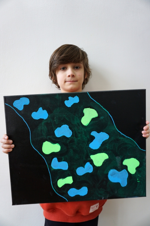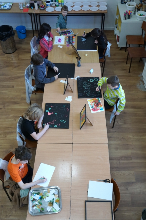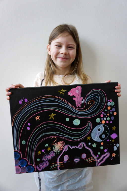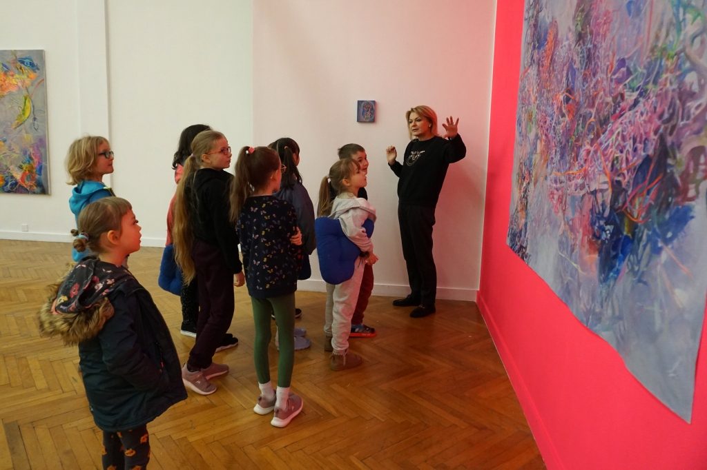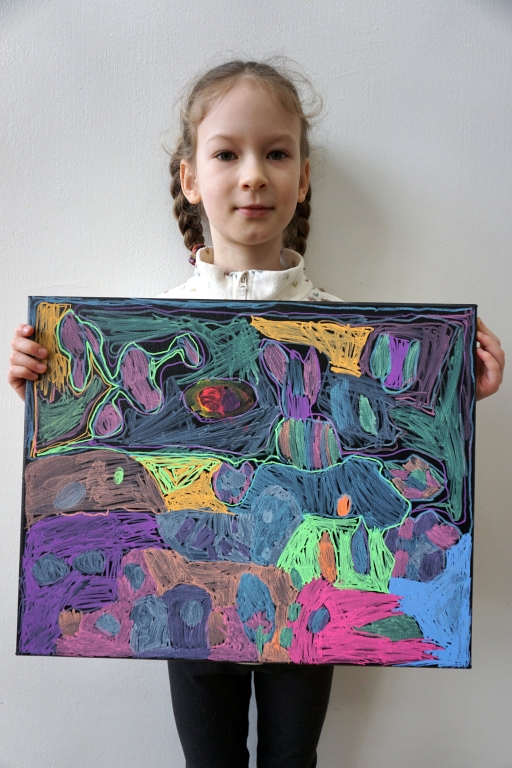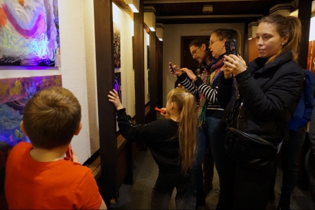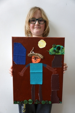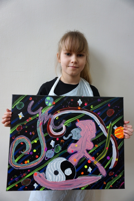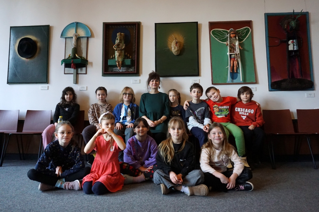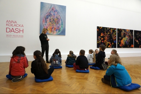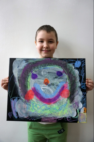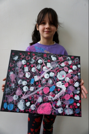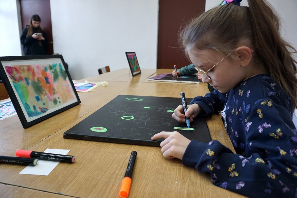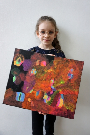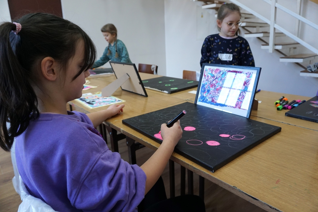 W trakcie tych dni uczestnicy obejrzeli wystawę Anny Kołackiej poznając jej metody pracy i inspiracje. Następnie obserwując różne struktury pod mikroskopem stworzyli szkice mazakami akwarelowymi i ekoliną (farbą akwarelową w płynie). Następnie przenieśli swoje szkice na płótno tworząc swoje obrazy rysując neonowymi mazakami i farbami akrylowymi. Ostatnią inspiracją dla dzieci były asamblaże Władysława Hasiora, a szczególnie jeden zatytułowany "Autoportret z chandrą". Dzieci z różnych tkanin, futer, papierów lustrzanych stworzyły swoje autoportrety na płótnie. Finałem Ferii ze sztuką był wernisaż wystawy podsumowującej twórcze poszukiwania dzieci. Dziękujemy za wspólne tworzenie!