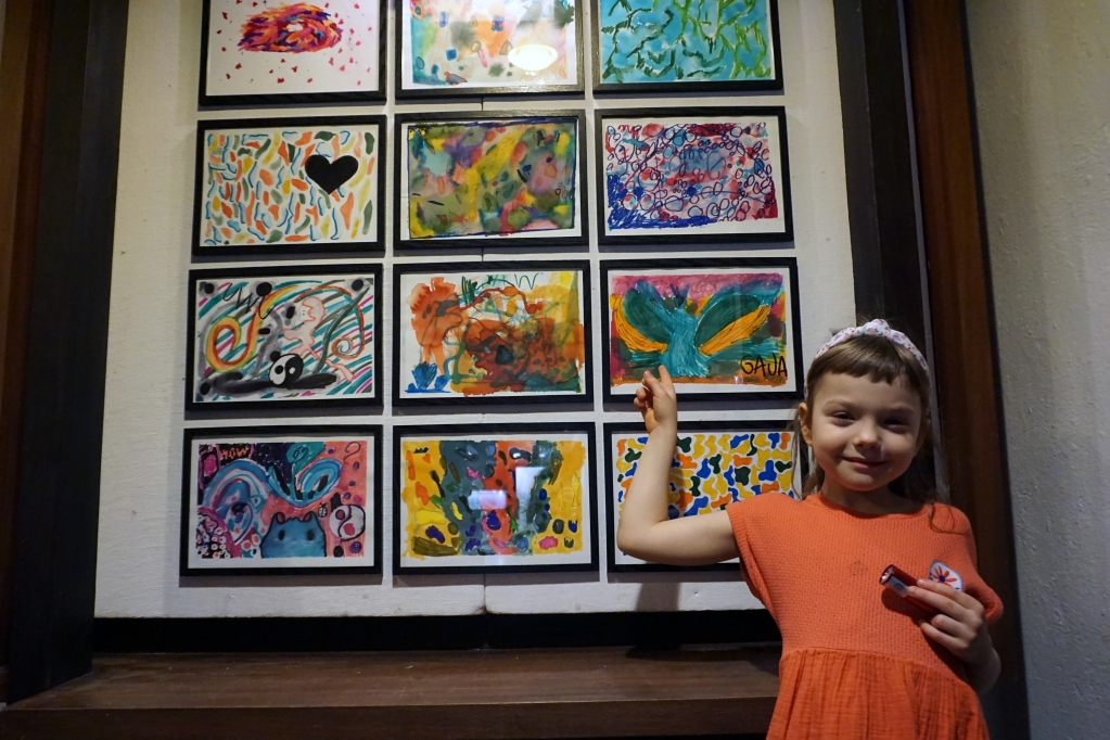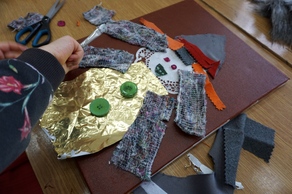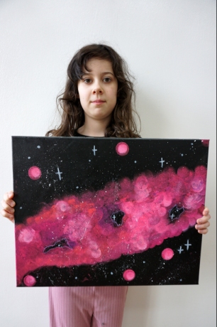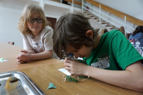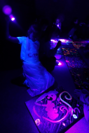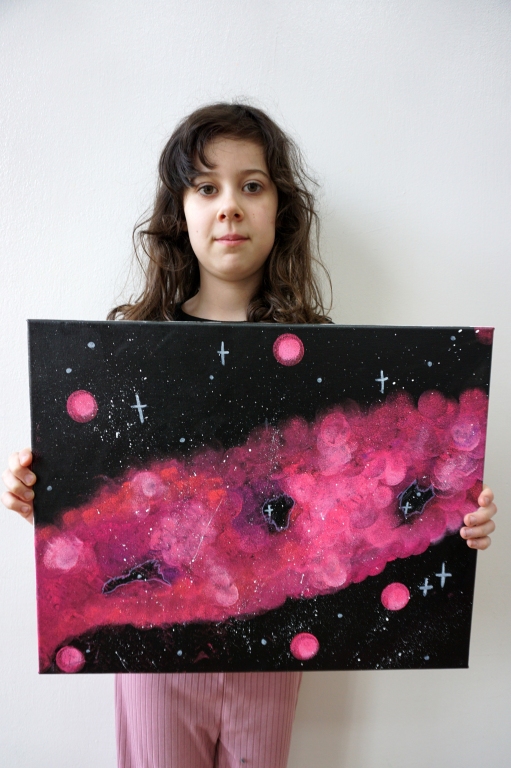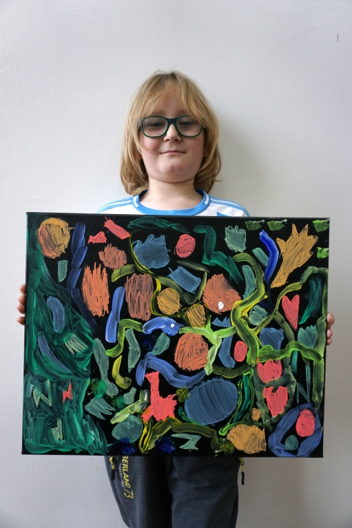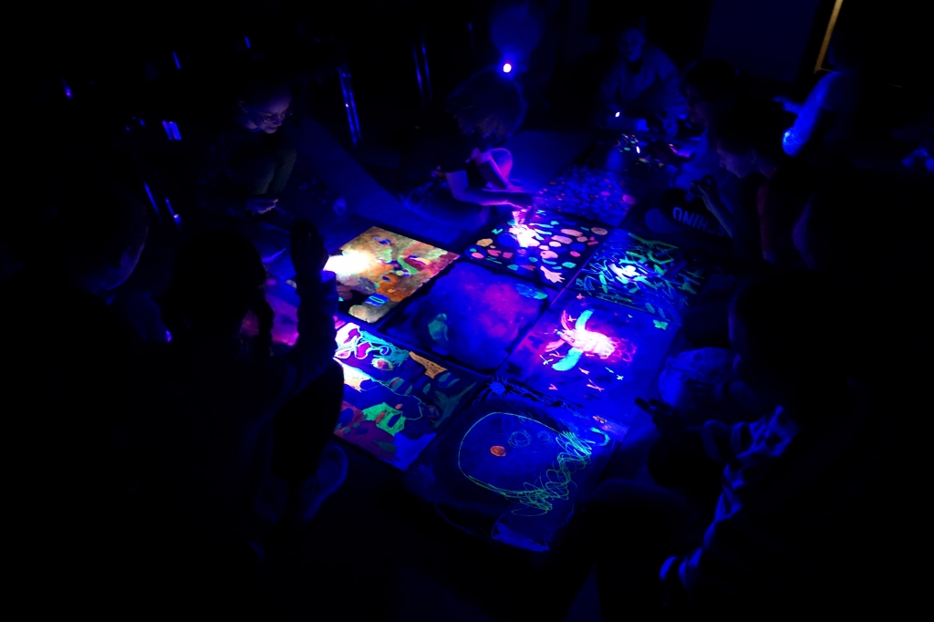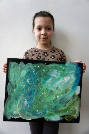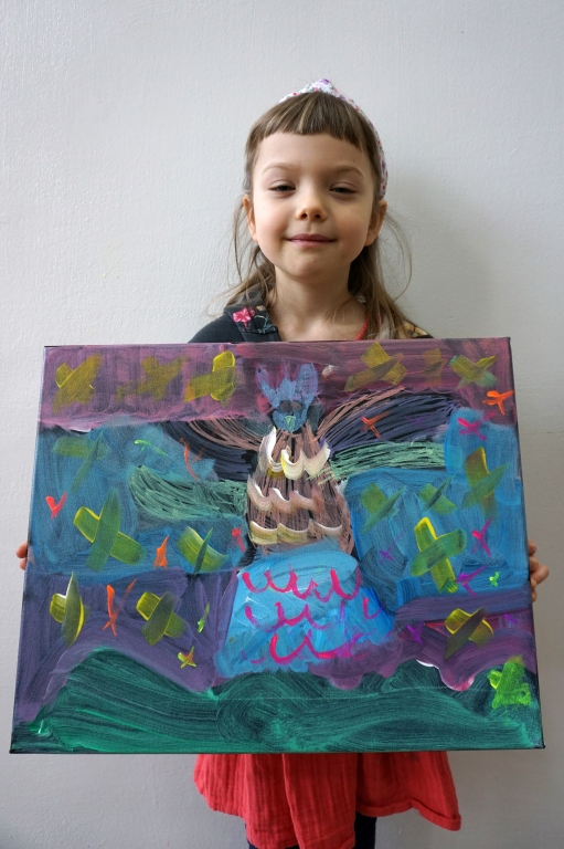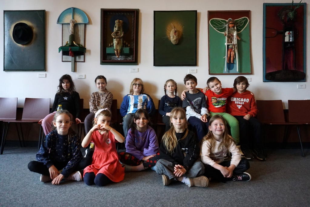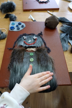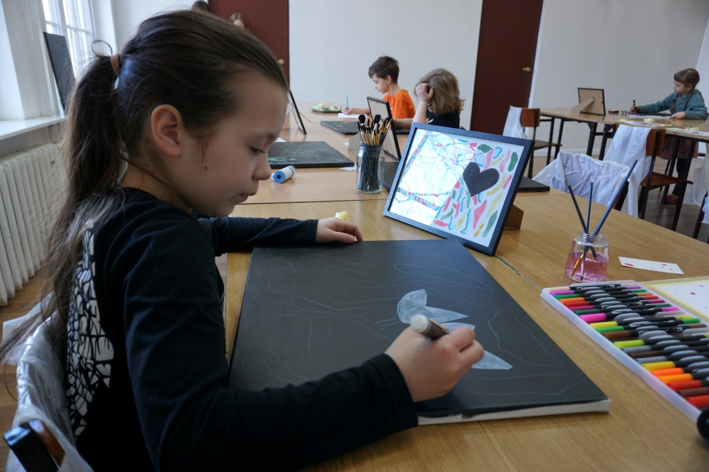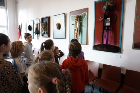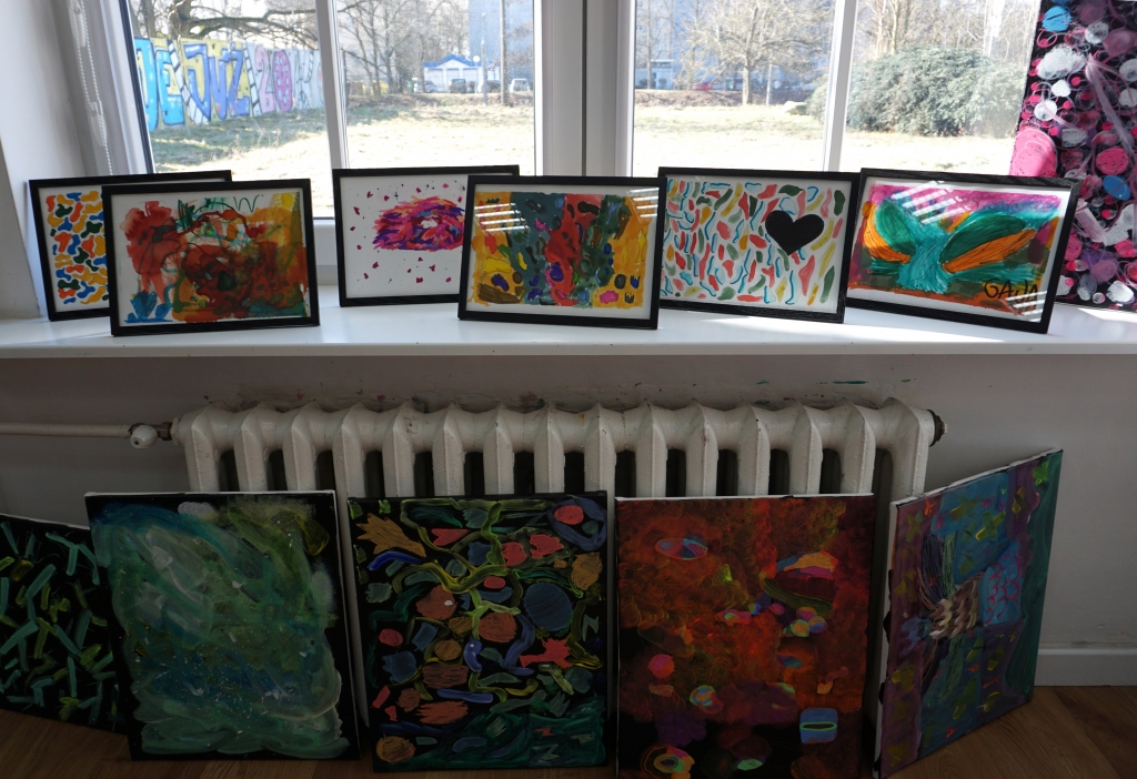 W trakcie tych dni uczestnicy obejrzeli wystawę Anny Kołackiej poznając jej metody pracy i inspiracje. Następnie obserwując różne struktury pod mikroskopem stworzyli szkice mazakami akwarelowymi i ekoliną (farbą akwarelową w płynie). Następnie przenieśli swoje szkice na płótno tworząc swoje obrazy rysując neonowymi mazakami i farbami akrylowymi. Ostatnią inspiracją dla dzieci były asamblaże Władysława Hasiora, a szczególnie jeden zatytułowany "Autoportret z chandrą". Dzieci z różnych tkanin, futer, papierów lustrzanych stworzyły swoje autoportrety na płótnie. Finałem Ferii ze sztuką był wernisaż wystawy podsumowującej twórcze poszukiwania dzieci. Dziękujemy za wspólne tworzenie!