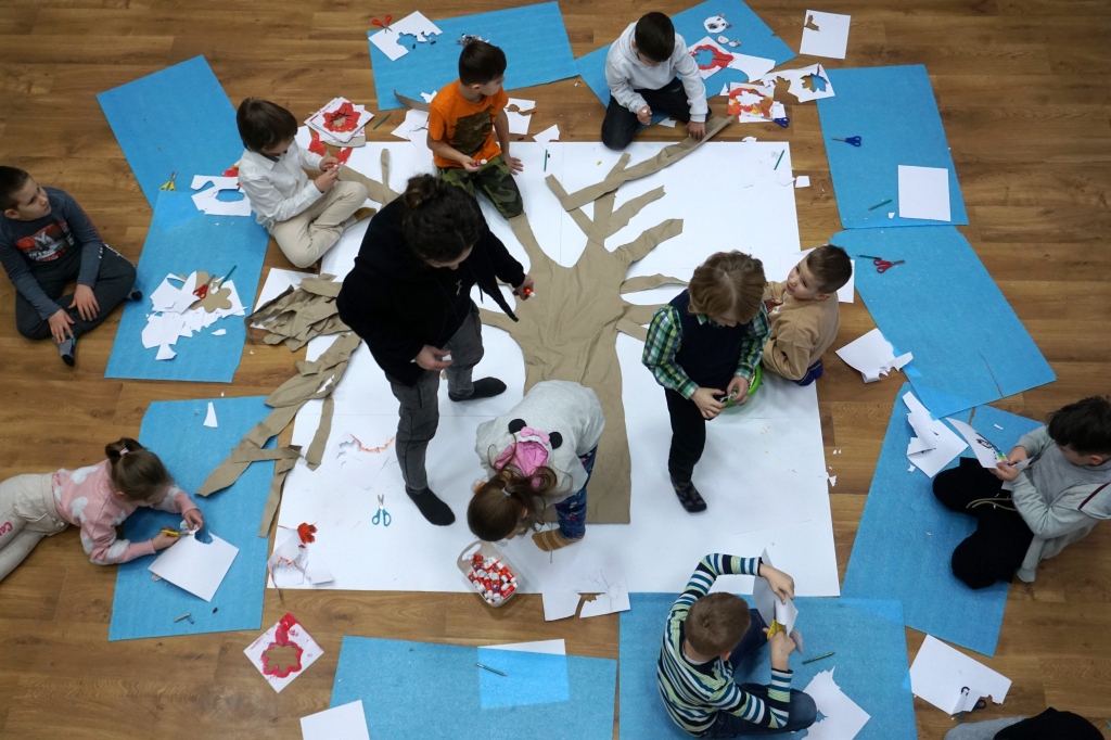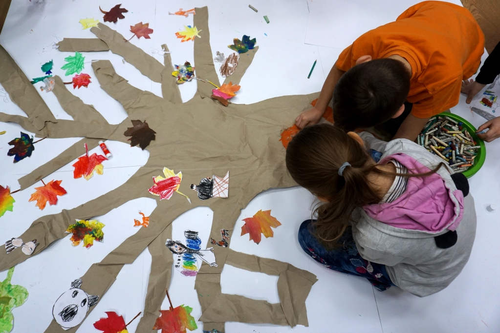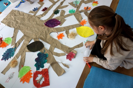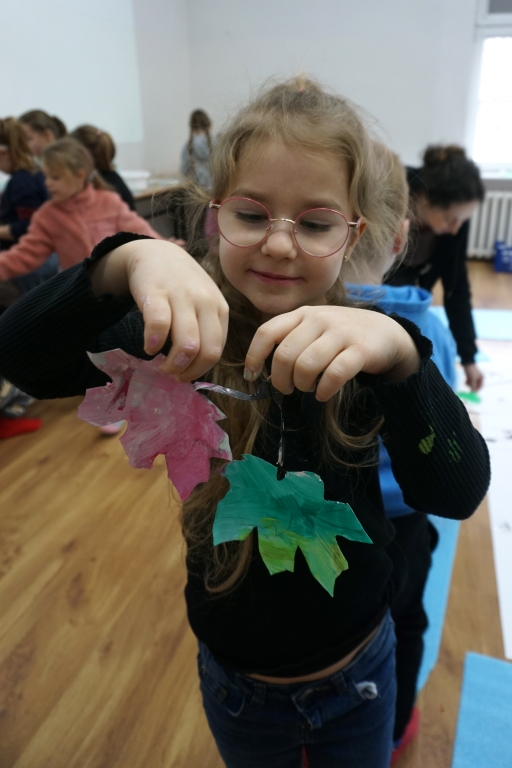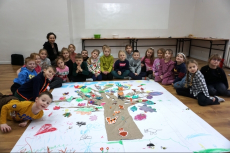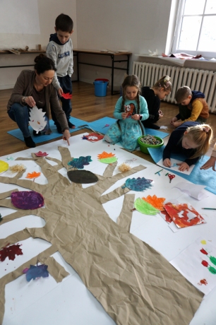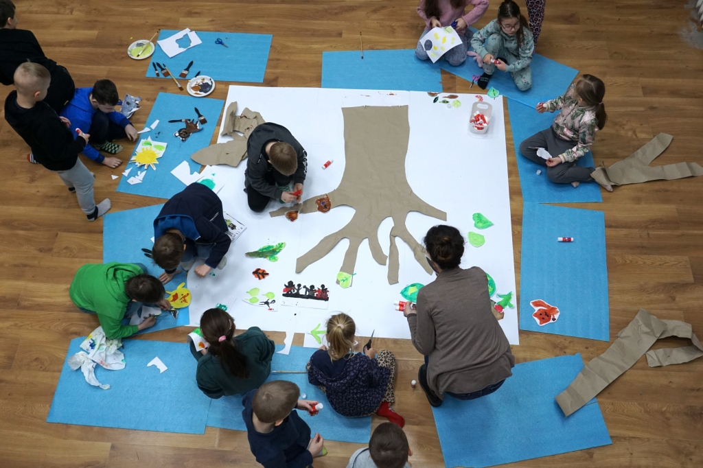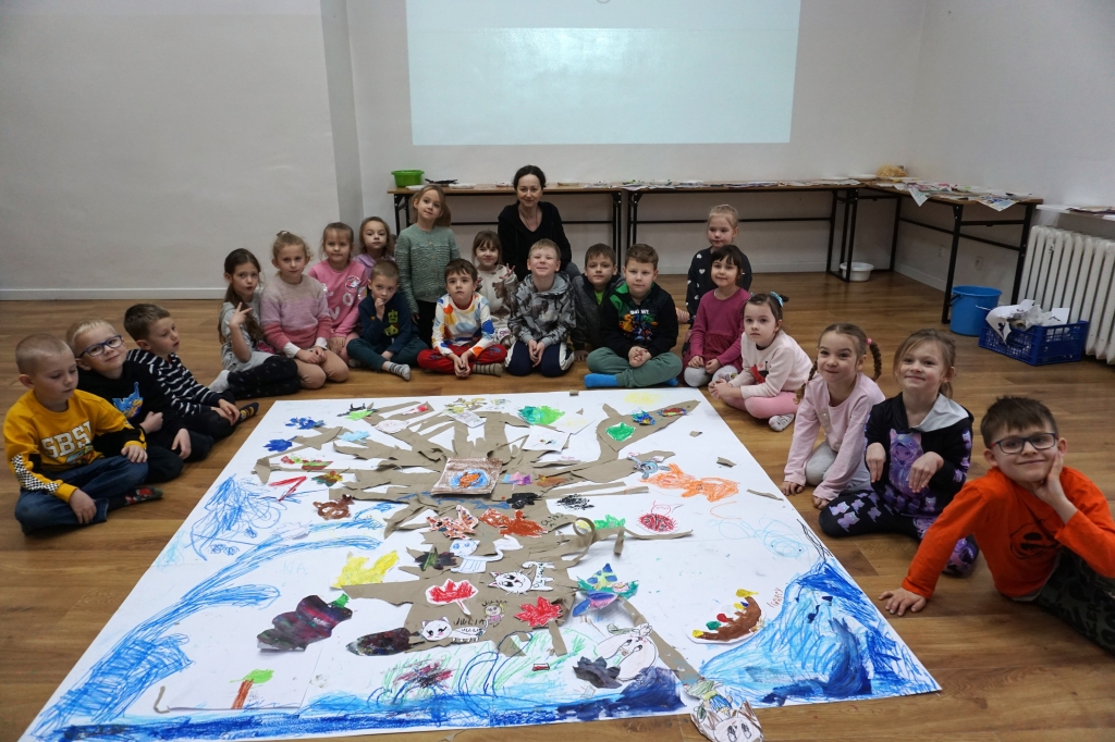 Podczas zajęć plastycznych dzieci stworzyły fantastyczne drzewa. Na gałęziach pojawiły się nie tylko liście, ale także inne, mniej oczywiste rzeczy: huśtawka z kwitnących pnączy, drzwi do tajemniczej krainy, nieznane dotąd gatunki zwierząt i owadów. Zajęcia zaczęły się od kilkuminutowej prezentacji, w której znalazły się dzieła, znane z historii sztuki, przedstawiające drzewa (m.in. Leonarda da Vinci, Vincenta van Gogha, Gustawa Klimta, Stanisława Wyspiańskiego).