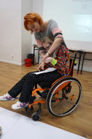 W trakcie zajęć uczestnicy dowiedzieli się również jak łączyć kolory podstawowe, aby uzyskać więcej barw. W pracy połączyliśmy malarstwo i kolaż.