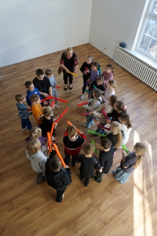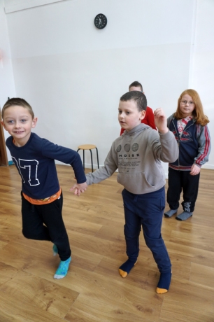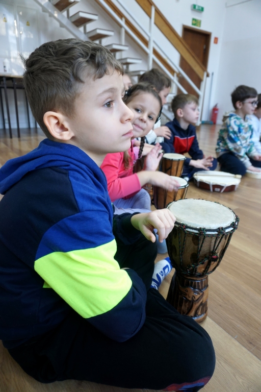 Podczas warsztatów uczniowie uczestniczyli w aktywnościach muzyczno-ruchowych, wykorzystywali własne ciało jako naturalny instrument, grali na prostych instrumentach perkusyjnych oraz przedmiotach codziennego użytku, a także wyrażali emocje poprzez ruch, śpiew i taniec.