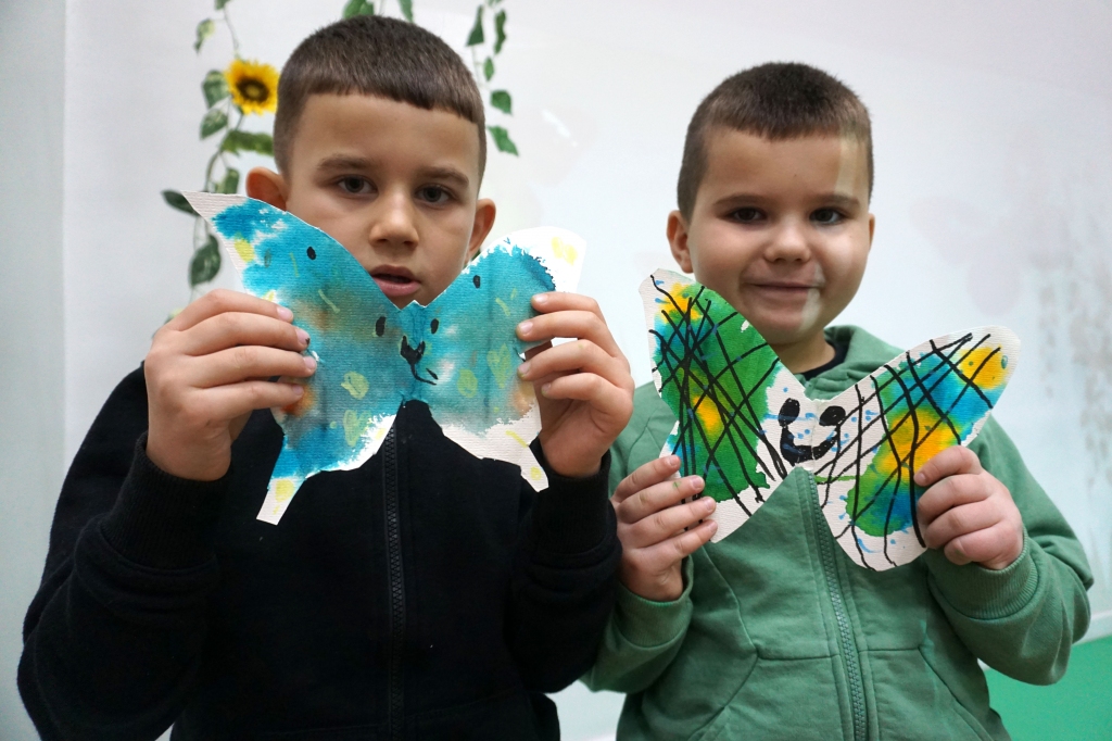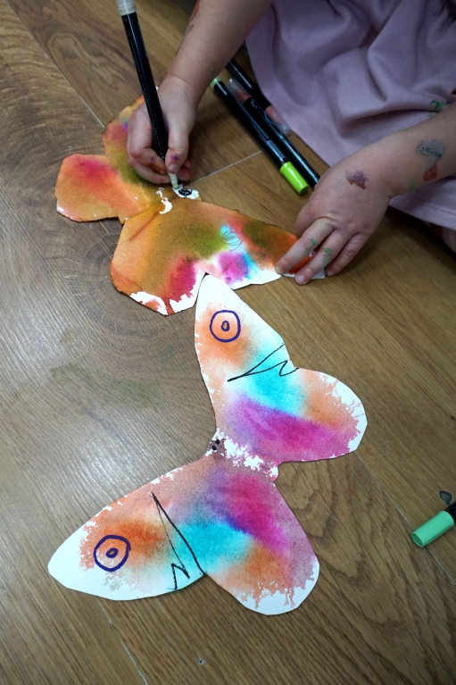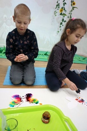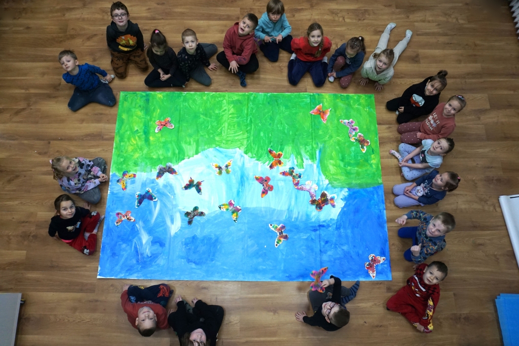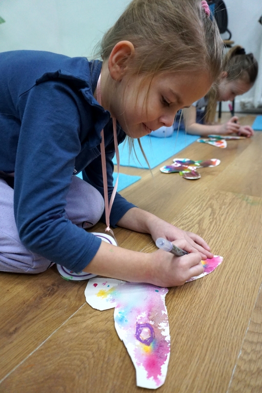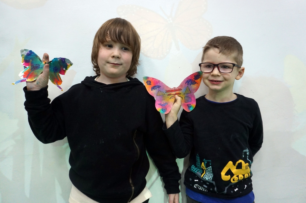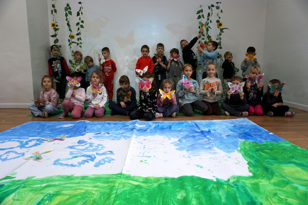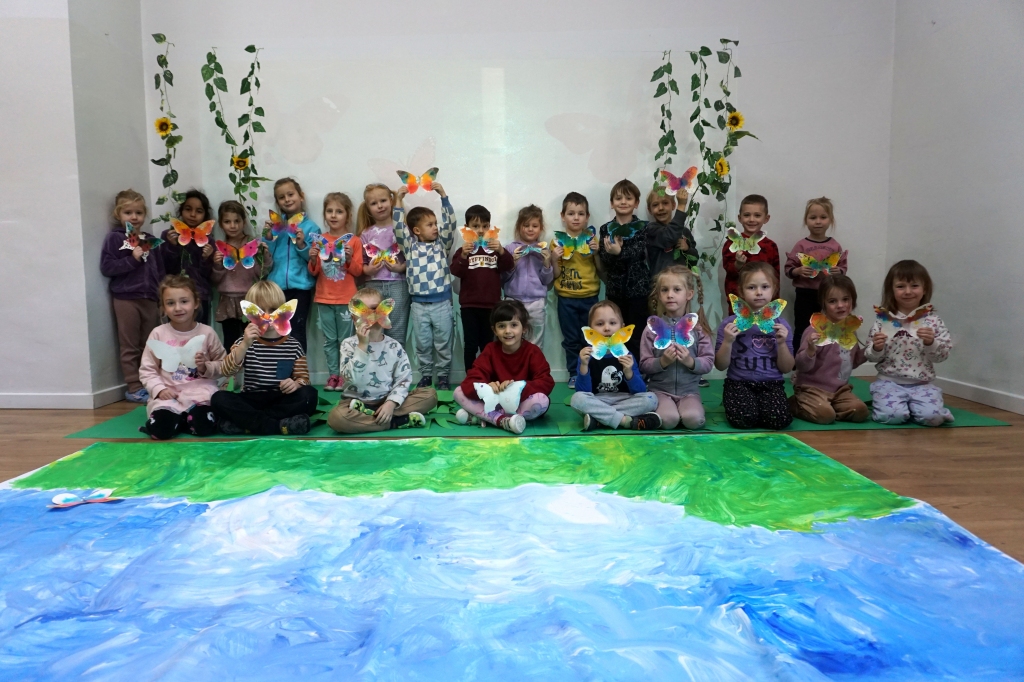 W dniach 17-19.11.2025 odbyły się drugie warsztaty SZTUKO(S)TWORY z ciekawskim stworkiem Florkiem. Dzieci wraz z nim podziwiały kolory motyli na łące. Poznały również etapy rozwoju motyli. Odrysowały z szablonów ich kształty, a następnie tworzyły kolory akwarelą w płynie. Na koniec wszystkie motyle pofrunęły na malarski obraz łąki. W tej edycji SZTUKO(S)TWORY inspirują się fauną, czyli światem zwierząt.