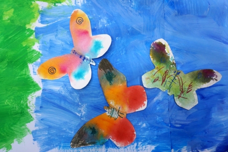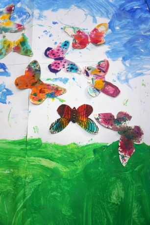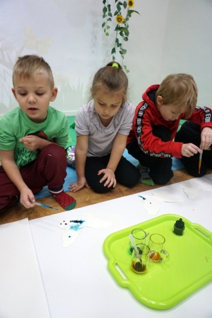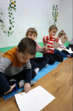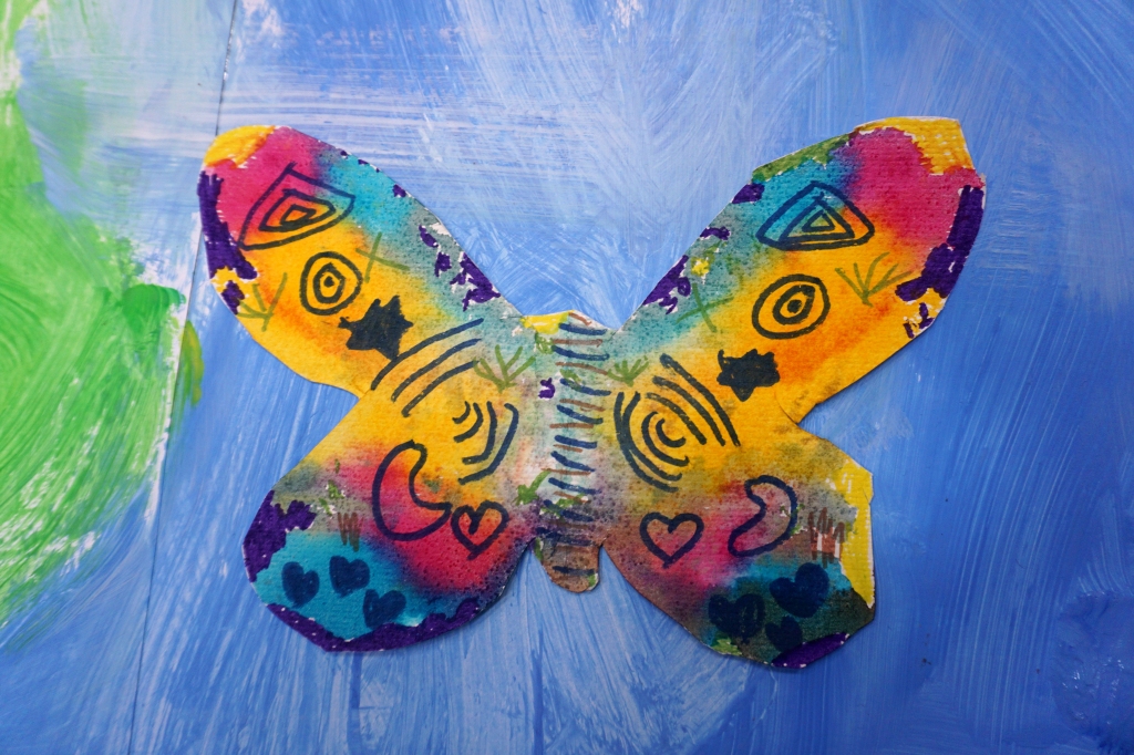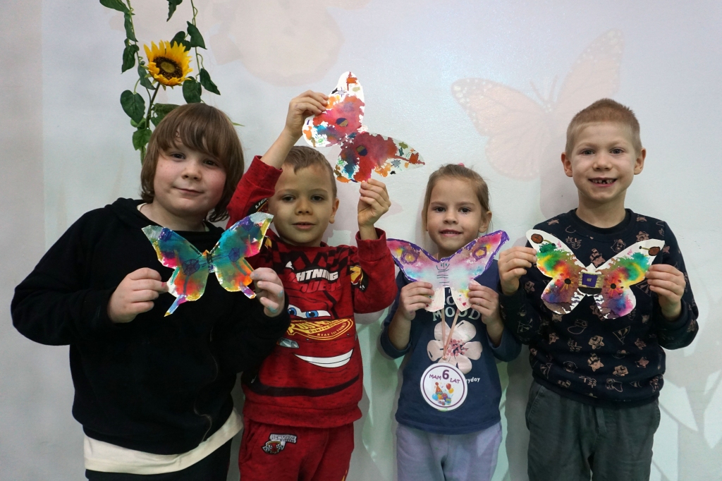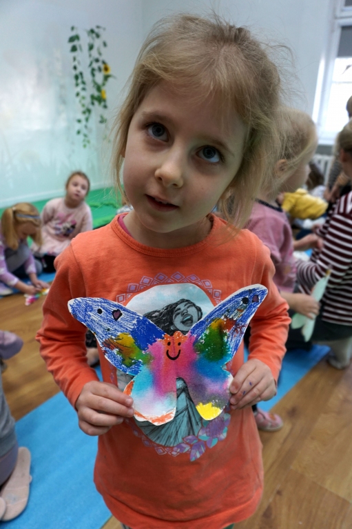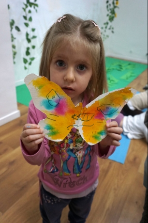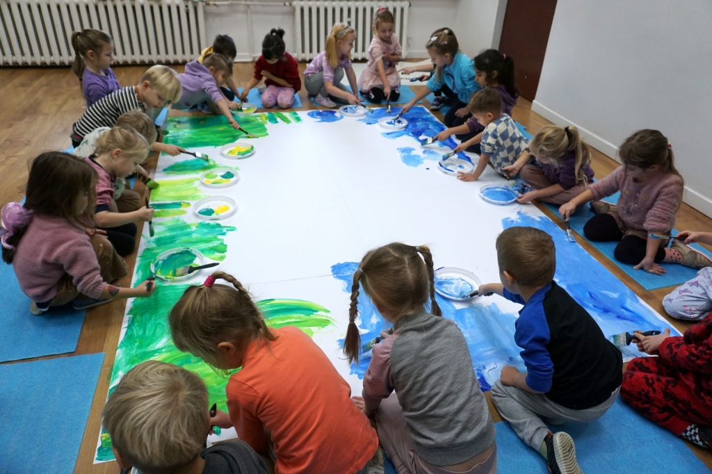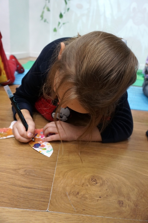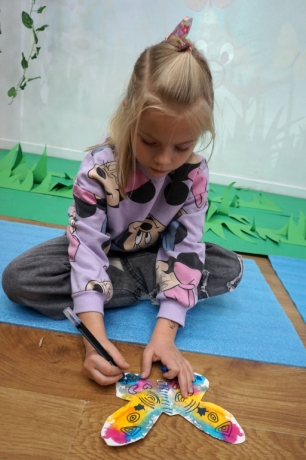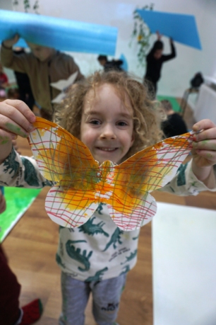 W dniach 17-19.11.2025 odbyły się drugie warsztaty SZTUKO(S)TWORY z ciekawskim stworkiem Florkiem. Dzieci wraz z nim podziwiały kolory motyli na łące. Poznały również etapy rozwoju motyli. Odrysowały z szablonów ich kształty, a następnie tworzyły kolory akwarelą w płynie. Na koniec wszystkie motyle pofrunęły na malarski obraz łąki. W tej edycji SZTUKO(S)TWORY inspirują się fauną, czyli światem zwierząt.