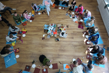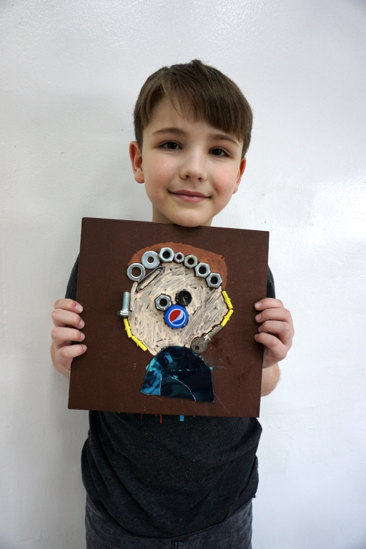 Podczas kolejnych warsztatów SZTUKowanie dzieci zwiedziły stałą kolekcję prac Władysława Hasiora. Poznały twórczość tego wielkiego artysty i termin asamblaż. Następnie z różnych materiałów i przedmiotów stworzyły swoje asamblażowe autoportrety inspirując się pracą Hasiora pt. "Autoportret z chandrą".