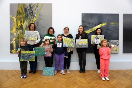 Podczas kolejnych warsztatów SZTUKowanie rodzinne zwiedziliśmy wystawę Salon jesienny.