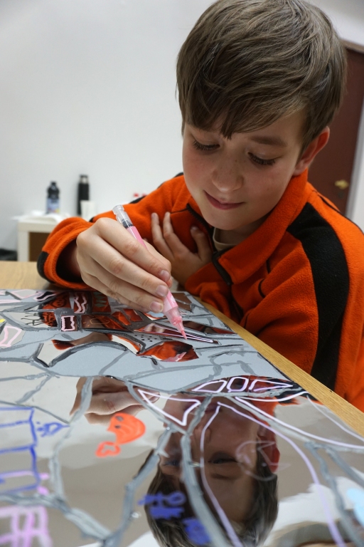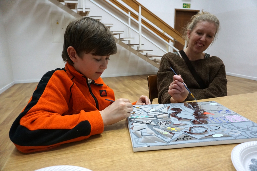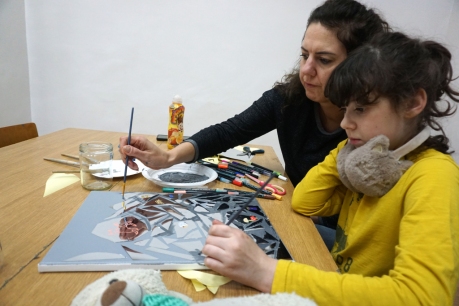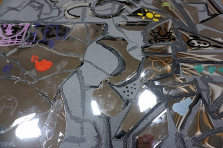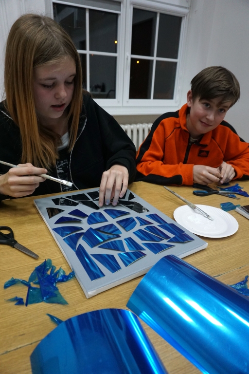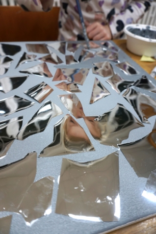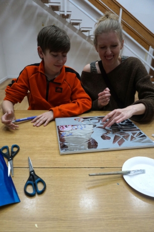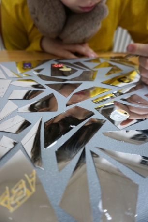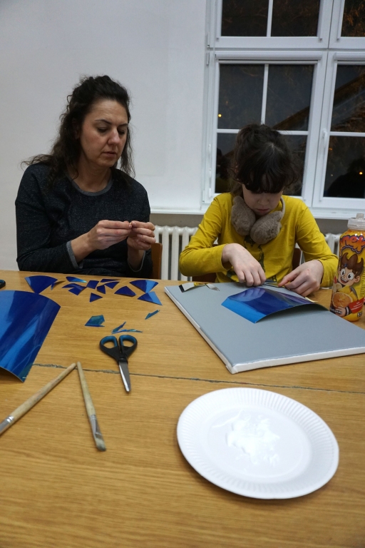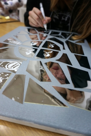 Na pierwszych w tym roku szkolnym warsztatach spotkaliśmy się na wystawie Natalii Szostak. Uczestnicy zobaczyli niezwykle osobiste wątki wystawy artystki. Inspiracją dla warsztatu stała się praca artystki z potłuczonym lustrem. Uczestnicy stworzyli na płótnie mazaikę z folii lustrzanej, a następnie na tych fargmentach narysowali wspomnienia rodzinne. Dziękujemy za udział w warsztatach!