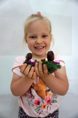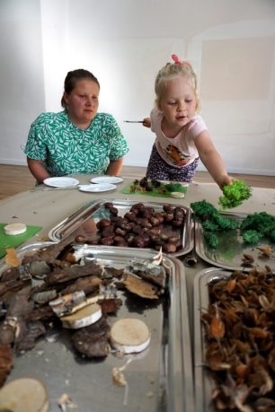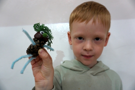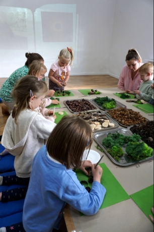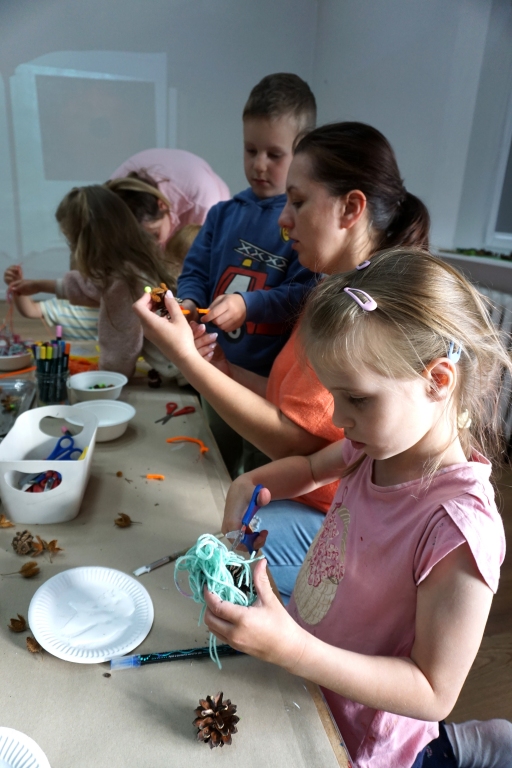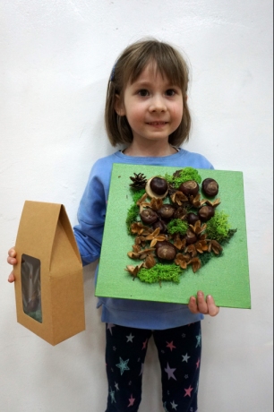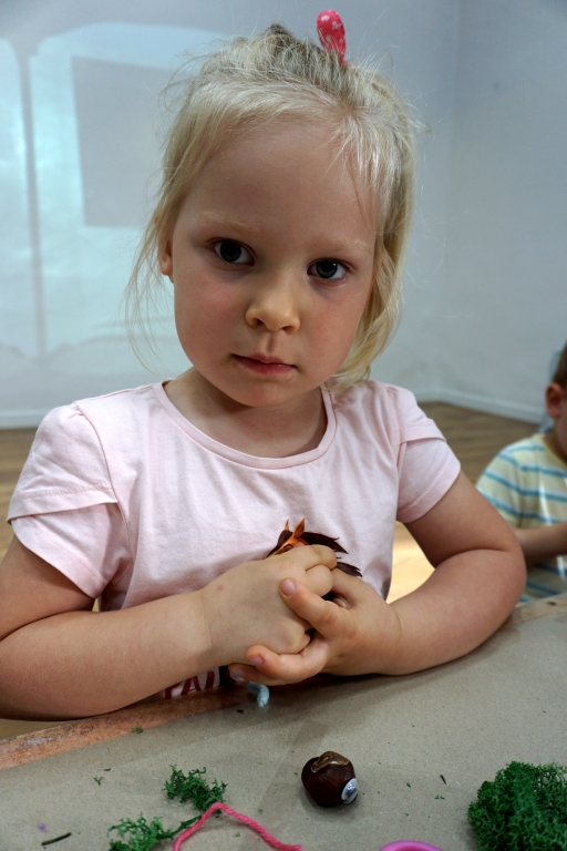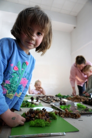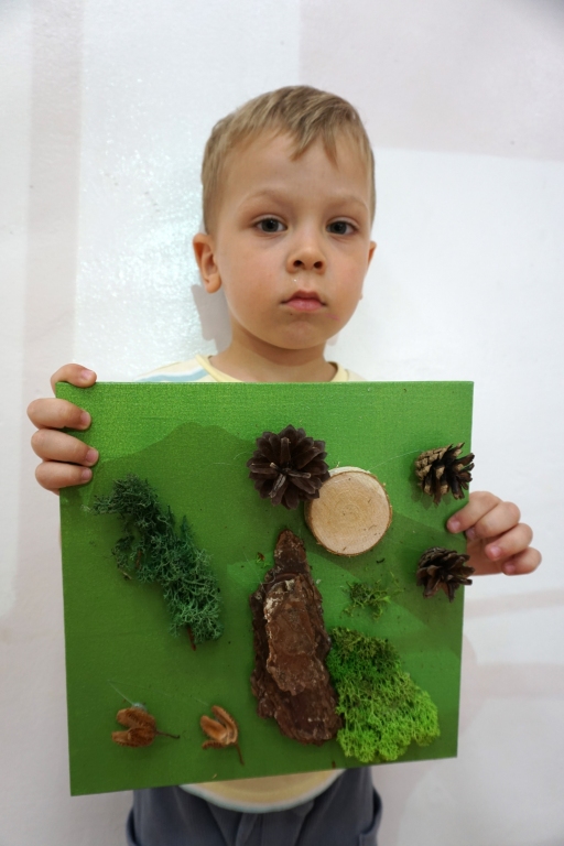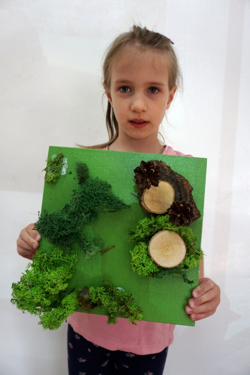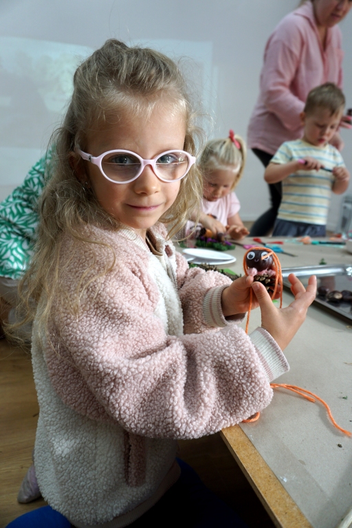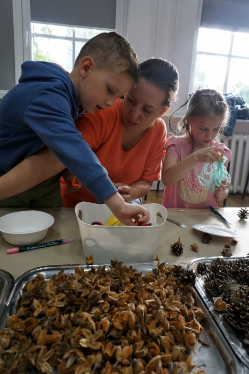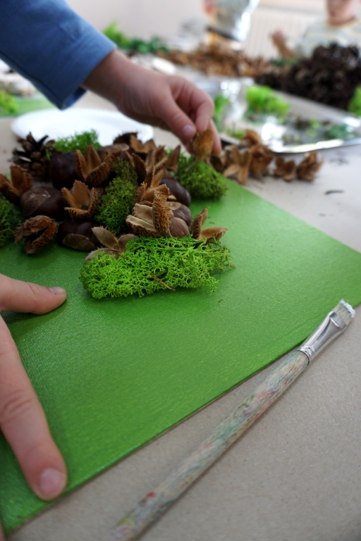 Dzieci poznały twórczość tego artysty i jego sposoby pracy. Niestety warunki pogodowe uniemożliwiły przeprowadzenie zajęć na dworze, ale dzieci z naturalnych materiałów takich jak szyszki, kasztany, łupinki bukowe, kora i mech stworzyły swoje prace. A komu pozostał czas mógł jeszcze stworzyć leśnego ludzika.