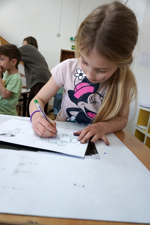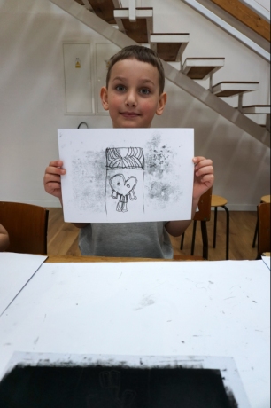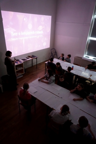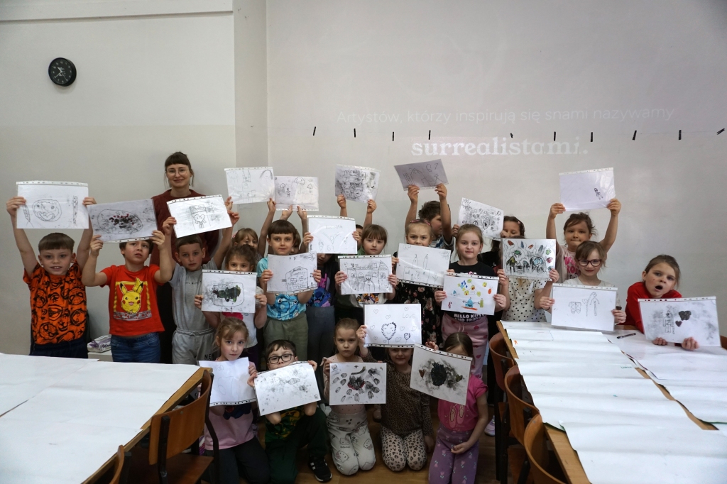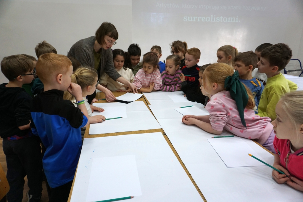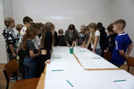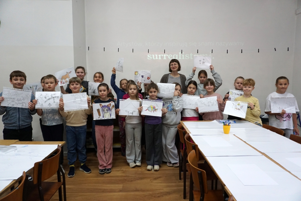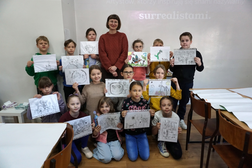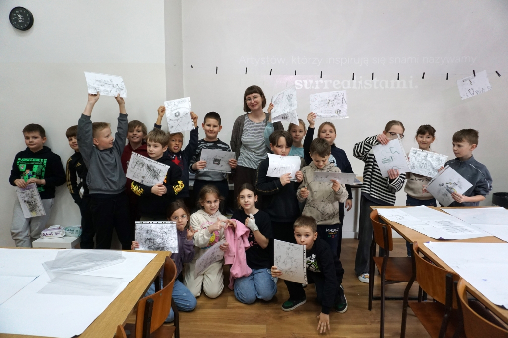 Inspirując się dziełami artystów surrealistycznych stworzyliśmy senne światy w technice monotypii (graficzna technika płaska).