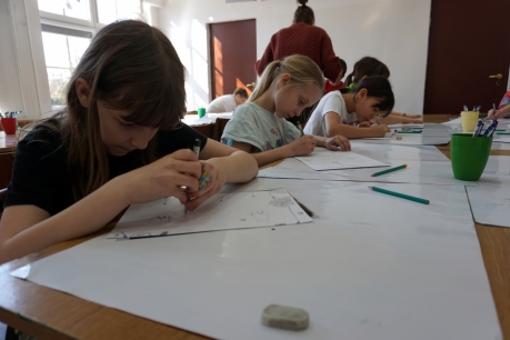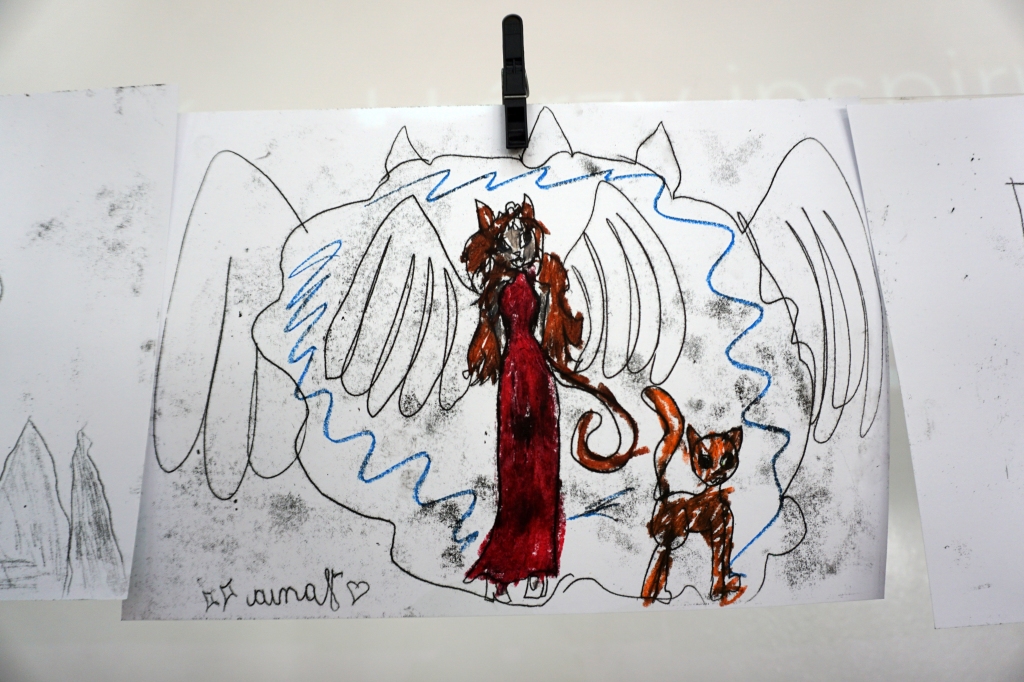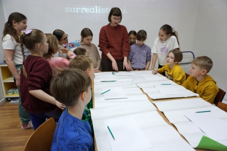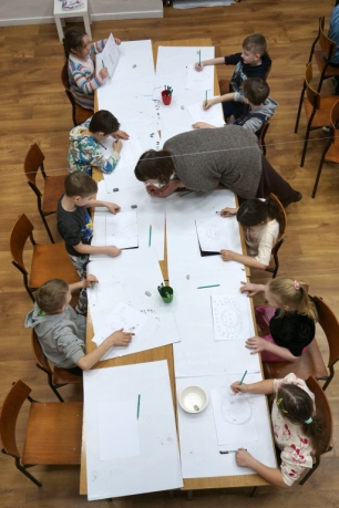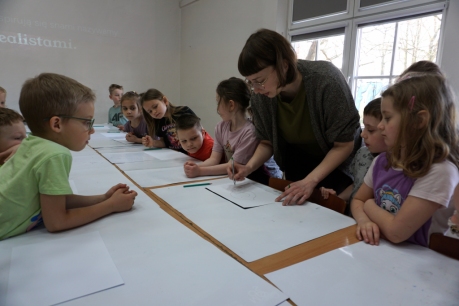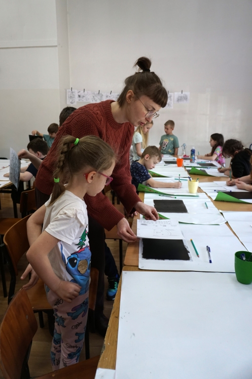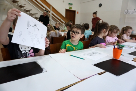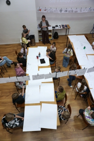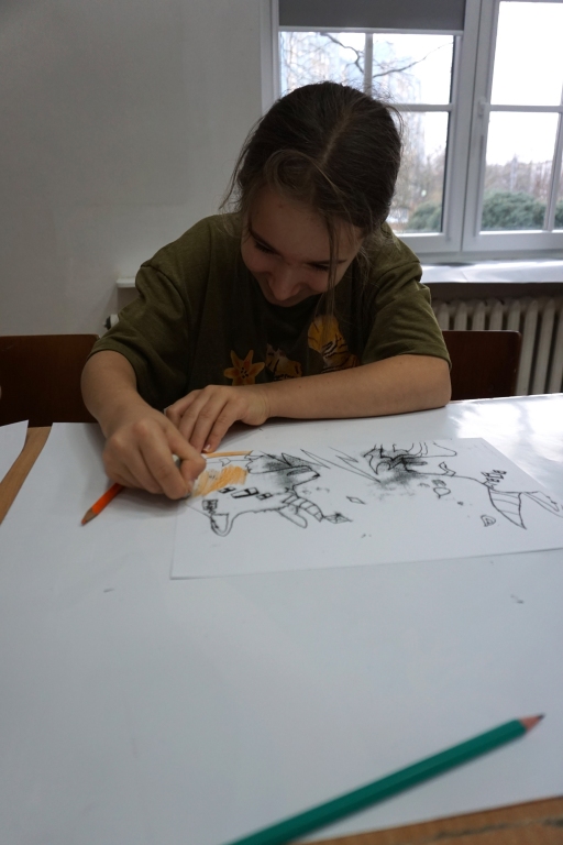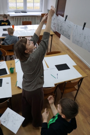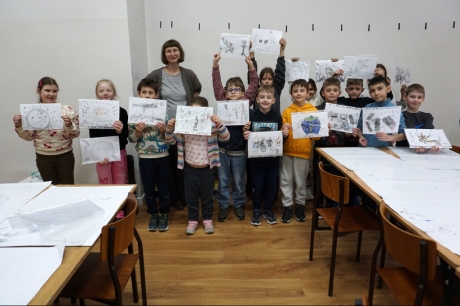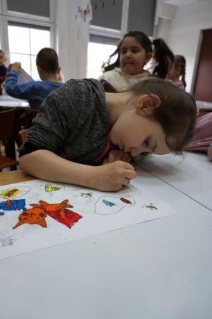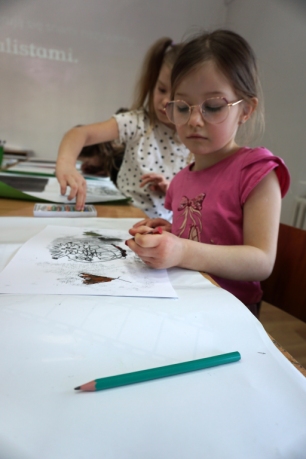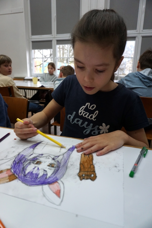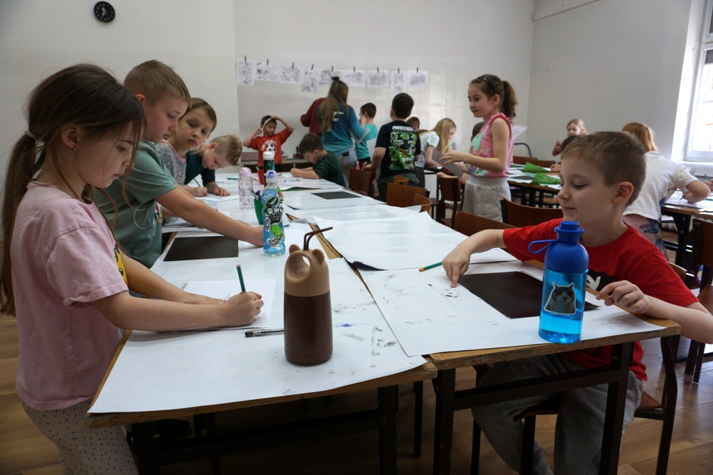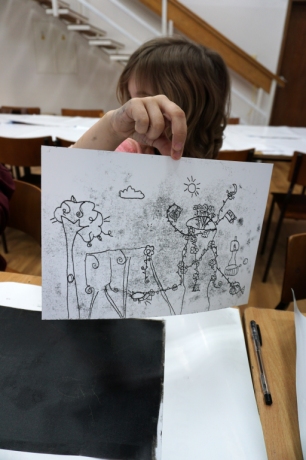 Inspirując się dziełami artystów surrealistycznych stworzyliśmy senne światy w technice monotypii (graficzna technika płaska).