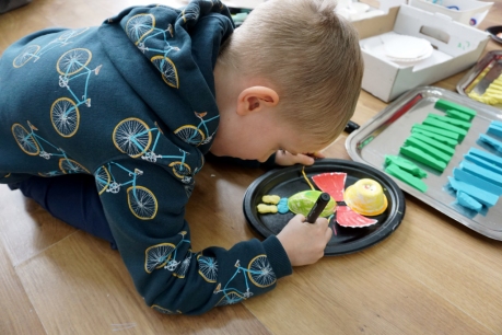 Kolejne SZTUKowanie odbyło się do wystawy SOLVE ET COAGULA Patrycji Orzechowskiej i Pawła Sobczaka. Dzieci zobaczyły wystawę inspirując się ceramikami artystki, stworzyły swoje płaskorzeźby z naczyń jednorazowych i plasteliny.