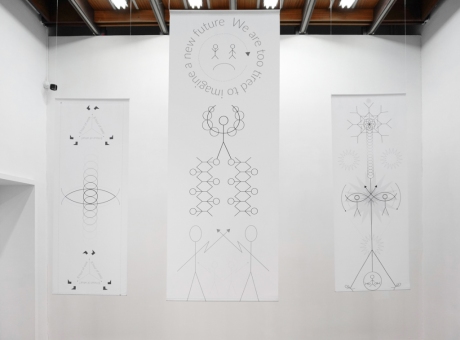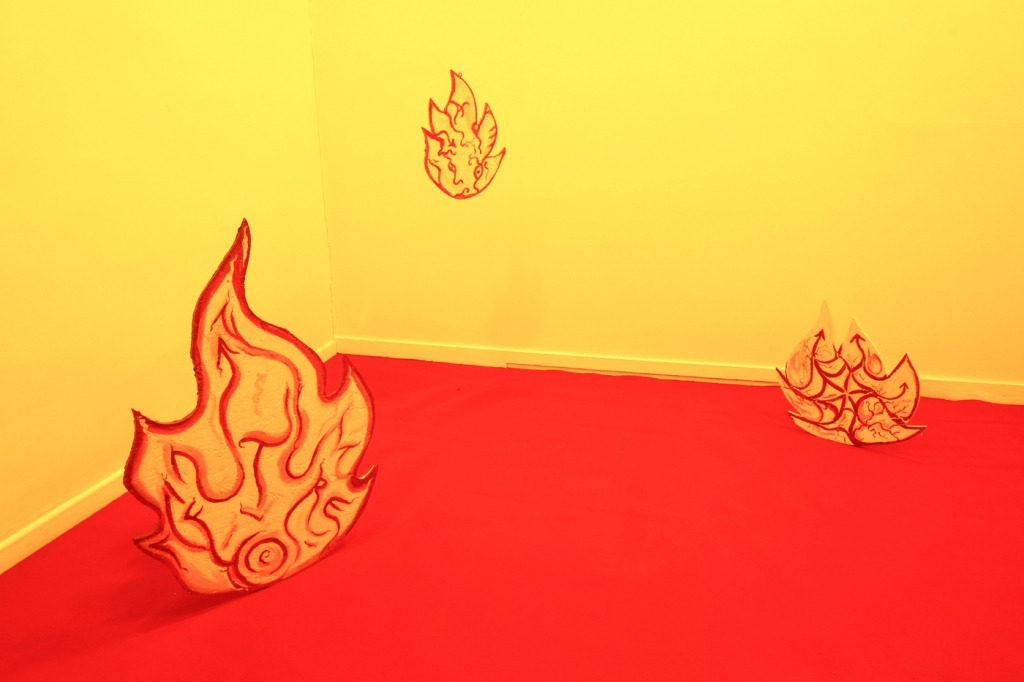 W swojej twórczości, artysta, oprócz nawiązywania do demonicznych przedstawień, posługuje się elementami wizualnymi zaczerpniętymi z estetyki graficznej używanej w edukacji, szkoleniu zawodowym, samorozwoju, instrukcjach obsługi, czy oznakowaniu publicznym. Na wystawie podejrzane graficzne schematy, zbudowane z uproszczonych ludzkich kształtów, piktogramów i symboli pomiaru, towarzyszą demonicznym obiektom. Grafiki, kontrastując z obiektami rzeźbiarskimi wektorową przejrzystością, nabierają charakteru pisma obrazkowego, na wzór tekstów okultystycznych i inskrypcji towarzyszącym wizerunkom demonów. Wszechobecne w pracach oczy: puste, wyżłobione w gąbce oparcia, przekrwione, zbudowane z wektorów, narysowane, animowane, podkreślają szczególną eksploatację tego narządu w ramach procesów „codziennych mutacji”.