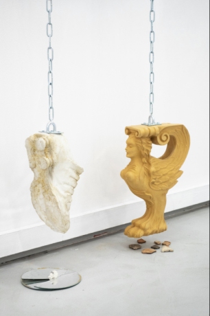 The exhibition highlights the horror of queer, where a powerful aesthetic experience becomes a language mediating encounters with strangeness. It affirms radical forms of queerness, focusing on the force of destruction that challenges normative ideas of reality. The works come together in a multidimensional experience of a peculiar herd—complementing and exceeding one another. It is a process of domestication, revealing the potential of terrifying gestures and the pleasure seeping from dissolved boundaries.
