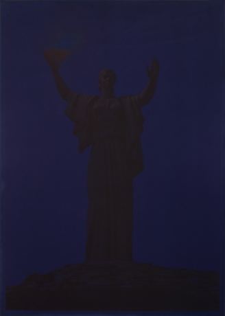 Rzeźba Matka Ojczyzna / Wzgórze Chwały w Czerkasach 2025, cyjanotypia, wydruk muzealny, 104x74cm, Solution Velvet White 270gsm