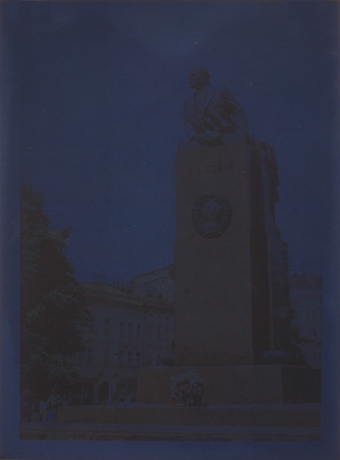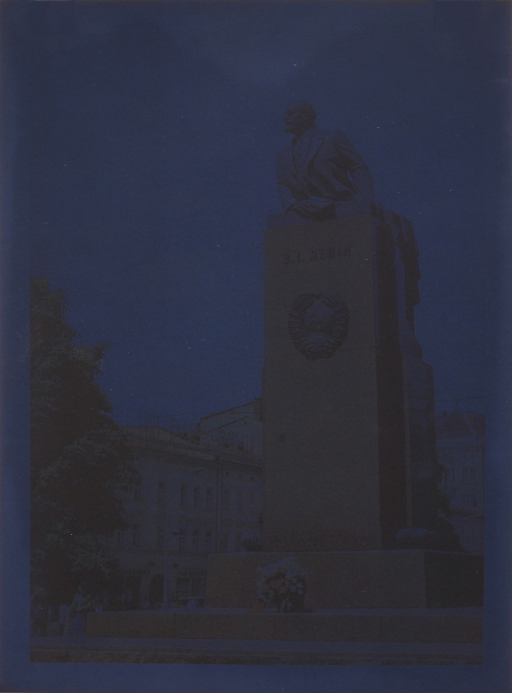 Pomnik Lenina we Lwowie 1952–1990, 2025 cyjanotypia, wydruk muzealny, 33x24cm, Solution Velvet White 270gsm
