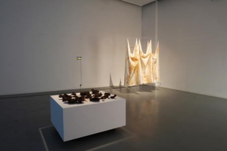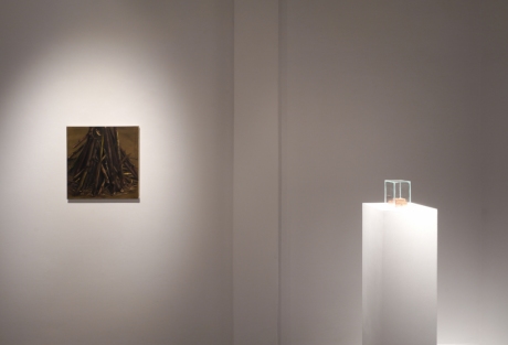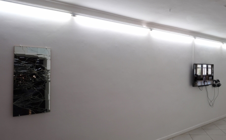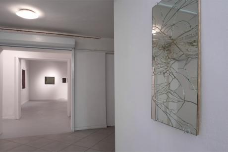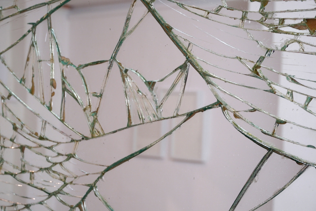 The work Phantom introduces the exhibition, planting the rhizome of meaning into the body of the display. A mirror stands before us, smashed into hundreds of pieces, which the artist has painstakingly collected and reassembled. It emerges as a symbol of history – always a part of a whole and in itself a sum of its parts. It is complete, and at the same time an impossible puzzle. Occurred and still happening. The act of reflecting (in oneself, in a painting, in a mirror) is composing oneself, always unfolding anew, here and now.