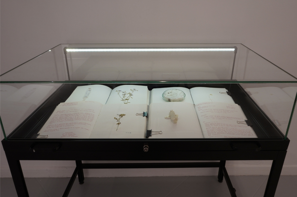The artist relates to the concept of autofiction, which tends to exempt from the duty of factual reality. There is no single truth, there are multiple stories. The obsessive gesture of creating, transcribing and archiving is a life-giving act of constructing one’s own identity; taking over the narrative, attempting to self-determine the current of one’s own life, the flow of lymph, blood and genes.2
