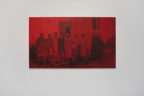 Szostak calls as witnesses her ancestors, organic matter, naturalia, medical artefacts. The artist’s loved ones, including she-dog Kuna, by taking part in the daily creative work enter the painting’s aura and actively constitute its content.