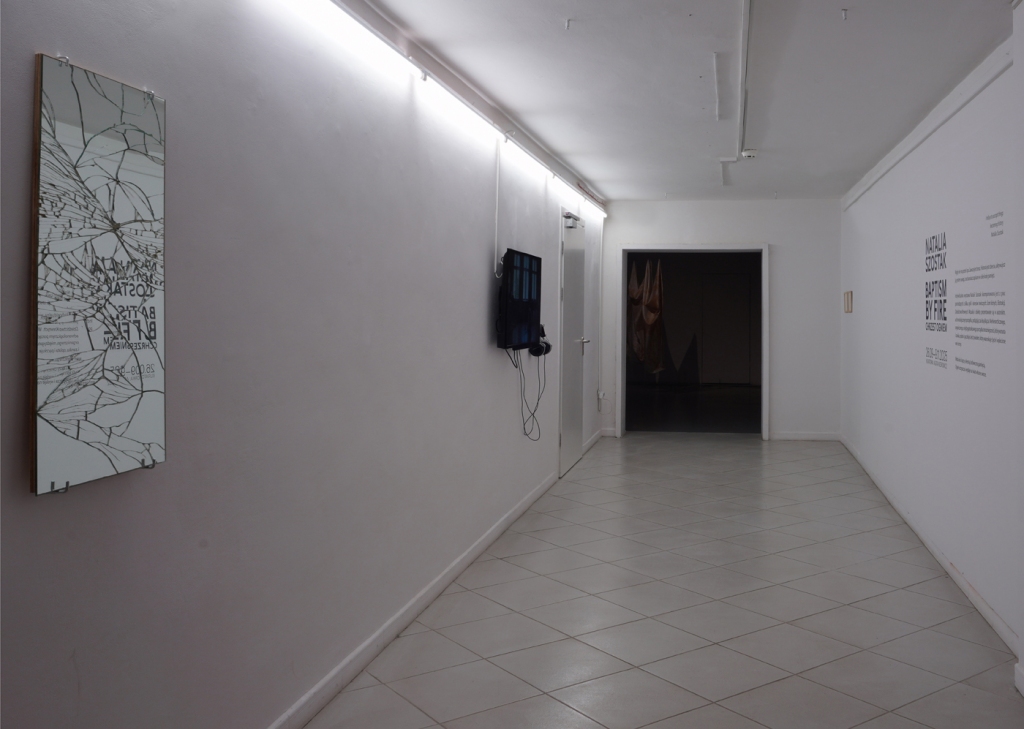 Wystawę otwiera praca Fantom, wprowadzająca znaczeniowe kłącze w ciało wystawy. Staje przed nami lustro rozbite na setki kawałków, pieczołowicie zebranych i złożonych ponownie w całość przez artystkę. Jawi się jako symbol historii, która zawsze jest częścią całości, i sama składa się z części. Jest kompletną, a zarazem niemożliwą układanką. Zaistniałą, a wciąż się wydarzającą. Akt przeglądania się (w sobie, w obrazie, w lustrze) jest komponowaniem siebie, rozgrywającym się zawsze od nowa, tu i teraz.