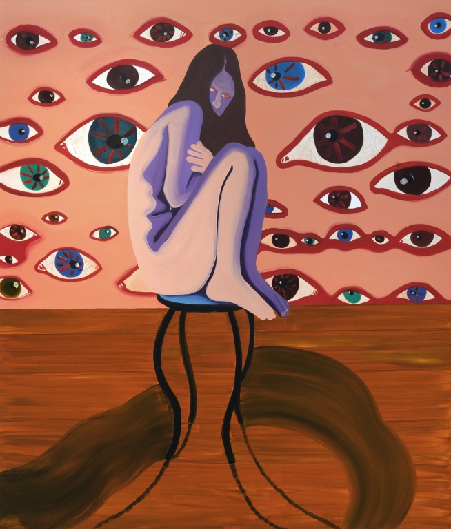 Czech’s vision is, at the very least, ambivalent. She sketches a world in which we all live within a vast psychosis. The inability to realize oneself or one’s desires presents the individual with a distinctly tragic landscape. A devastated psyche imprints itself upon the body: the pallor of figures, the piercing emptiness in painted eyes. Yet the madness is not entirely collective. Seeking solace in those who share a similar condition proves futile. The awareness that traumas and phobias cannot be processed communally drives a person deeper into themselves. Society, in this sense, becomes a gathering of isolated, ailing individuals stripped of meaningful communication.